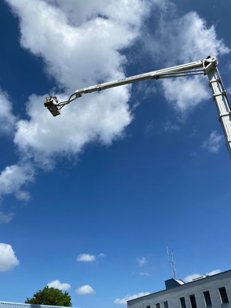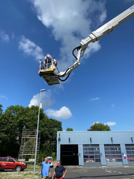 Im Anschluss wurde noch ein besonderes Highlight für die Vorstände organisiert. Wer es sich zutraute konnte mit der Gelenkmastbühne der ansässigen Feuerwehr in die Luft gehen. Mit dem geigneten Sicherungsmaterial fuhren einige bis in die luftige Höhe von 90 Metern.